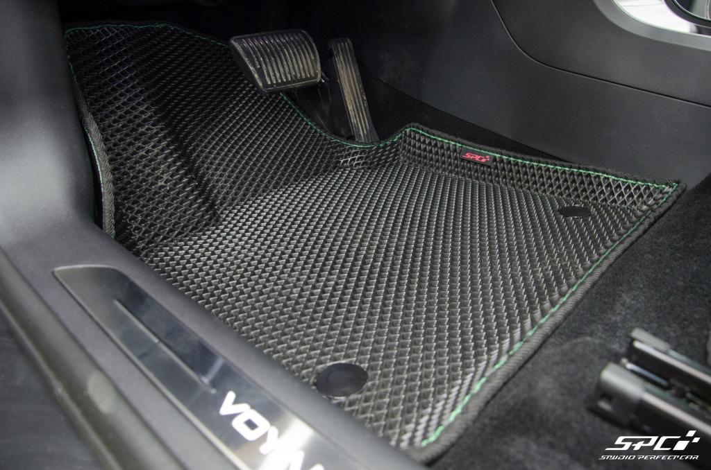 Коврики изготовлены из EVA-материала  российского производства  с ячейками на выбор: соты или ромбы. Эта линейка ковров изготавливается по формам,  которые полностью повторяет рельеф пола Вашей марки и модели автомобиля на специальных станках.  В комплект в салон входит  5 ковриков: 2 передних, 2 задних и перемычка. Водительский коврик изготавливаем без разреза под ступеньку для отдыха левой ноги, формуем. Для надежной фиксации в салоне с изнаночной стороны коврики отшиваем липучками.