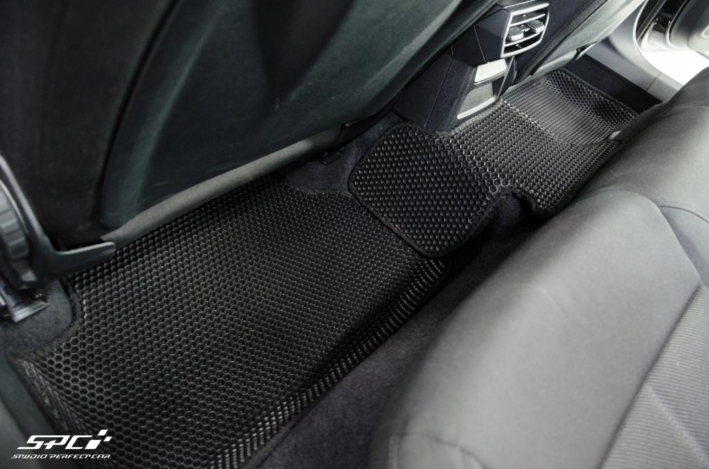 Купить коврики EVA можно выбрав в конструкторе фактуру материала (сота смотрится немного интереснее, но её желательно дополнить подпятником, чтобы комплект служил вечно), цвета основы коврика и окантовки, а также вариант комплектации и положив комплект в корзину. При желании добавьте подпятник и шильдик.