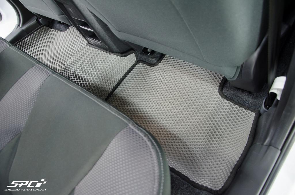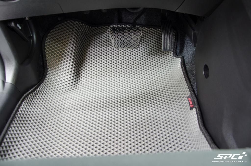 Купить коврики EVA можно выбрав в конструкторе фактуру материала (сота смотрится немного интереснее, но её желательно дополнить подпятником, чтобы комплект служил вечно), цвета основы коврика и окантовки, а также вариант комплектации и положив комплект в корзину. При желании добавьте подпятник и шильдик.