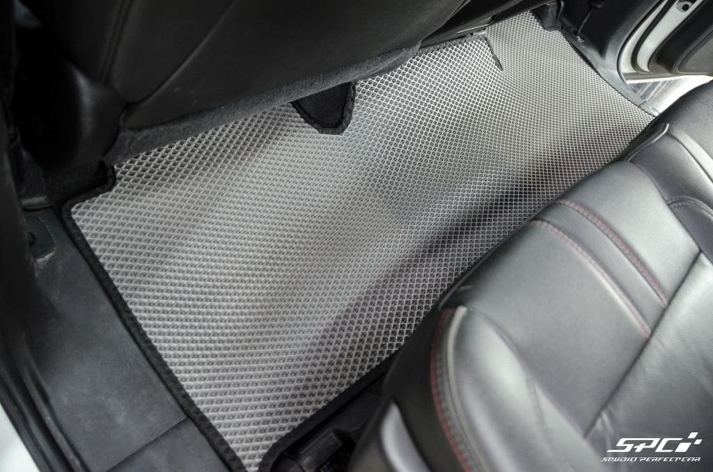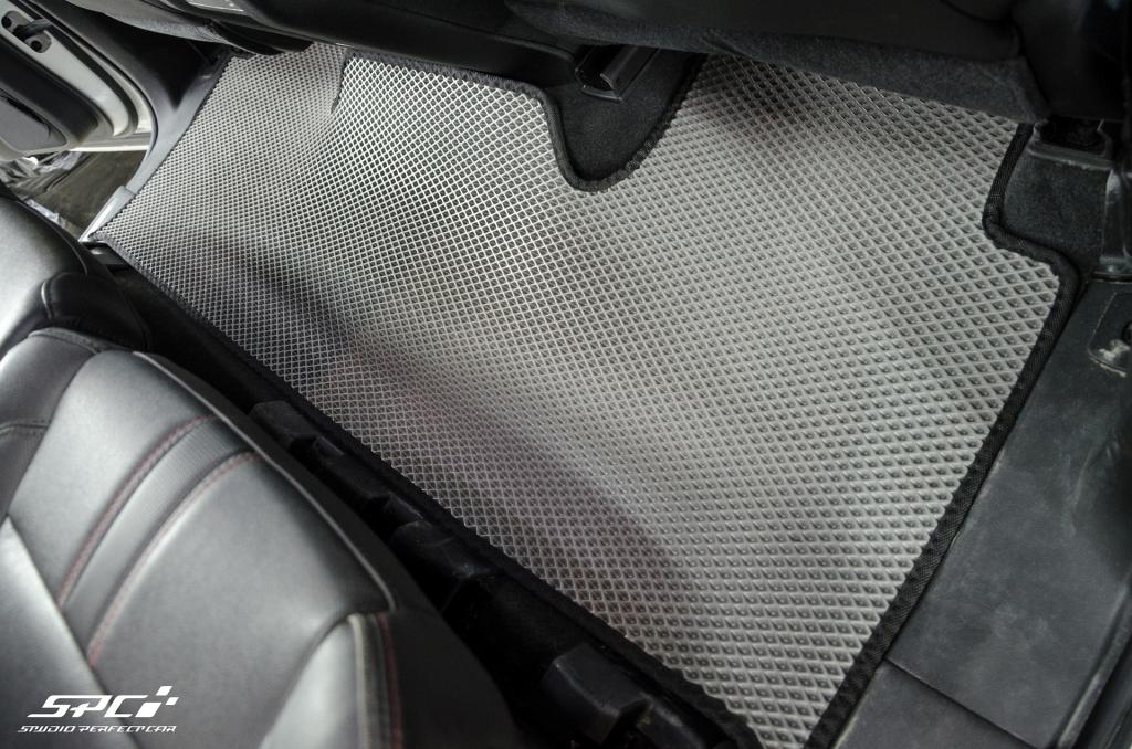 Купить коврики EVA можно выбрав в конструкторе фактуру материала (сота смотрится немного интереснее, но её желательно дополнить подпятником, чтобы комплект служил вечно), цвета основы коврика и окантовки, а также вариант комплектации и положив комплект в корзину. При желании добавьте подпятник и шильдик.