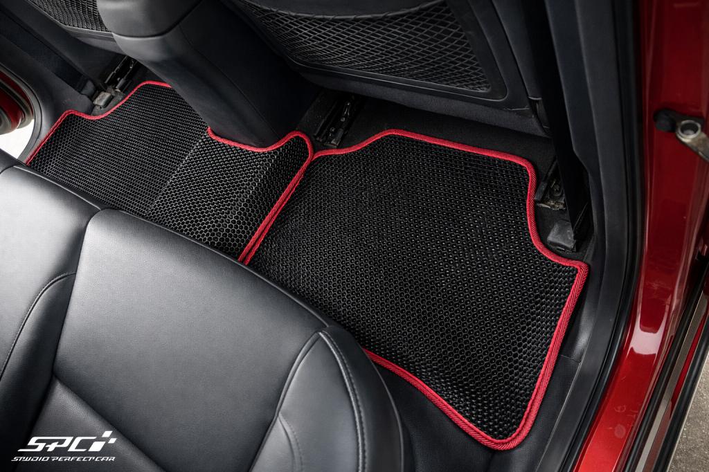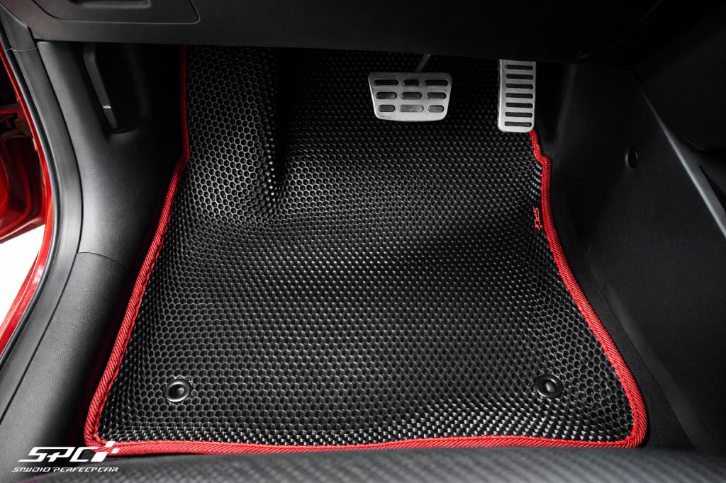 Купить коврики EVA можно выбрав в конструкторе фактуру материала (сота смотрится немного интереснее, но её желательно дополнить подпятником, чтобы комплект служил вечно), цвета основы коврика и окантовки, а также вариант комплектации и положив комплект в корзину. При желании добавьте подпятник и шильдик.