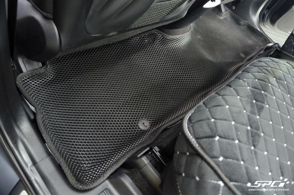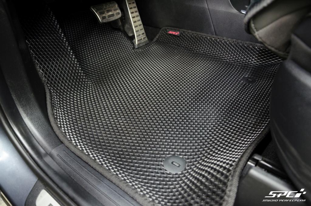 Купить коврики EVA можно выбрав в конструкторе фактуру материала (сота смотрится немного интереснее, но её желательно дополнить подпятником, чтобы комплект служил вечно), цвета основы коврика и окантовки, а также вариант комплектации и положив комплект в корзину. При желании добавьте подпятник и шильдик.