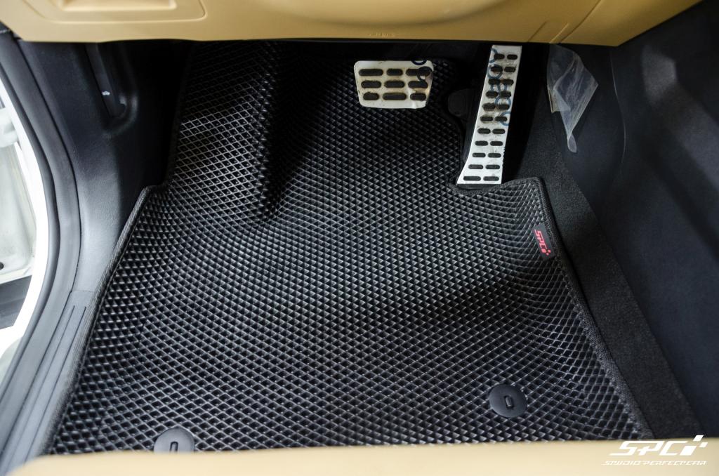 Купить коврики EVA можно выбрав в конструкторе фактуру материала (сота смотрится немного интереснее, но её желательно дополнить подпятником, чтобы комплект служил вечно), цвета основы коврика и окантовки, а также вариант комплектации и положив комплект в корзину. При желании добавьте подпятник и шильдик.