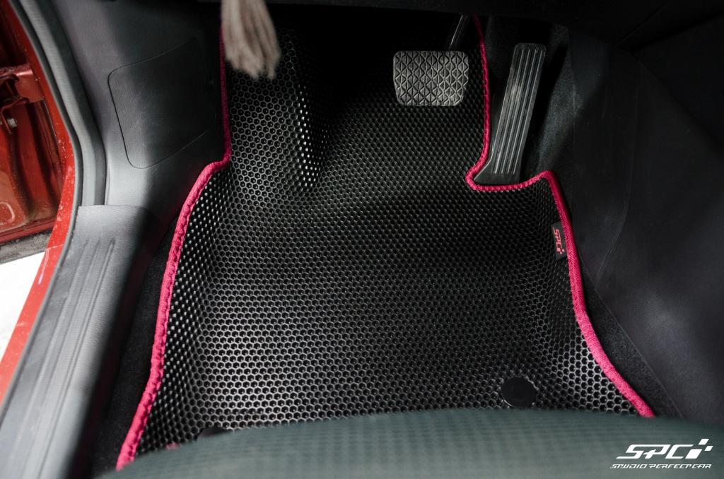 Купить коврики EVA можно выбрав в конструкторе фактуру материала (сота смотрится немного интереснее, но её желательно дополнить подпятником, чтобы комплект служил вечно), цвета основы коврика и окантовки, а также вариант комплектации и положив комплект в корзину. При желании добавьте подпятник и шильдик.
