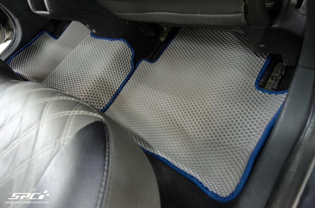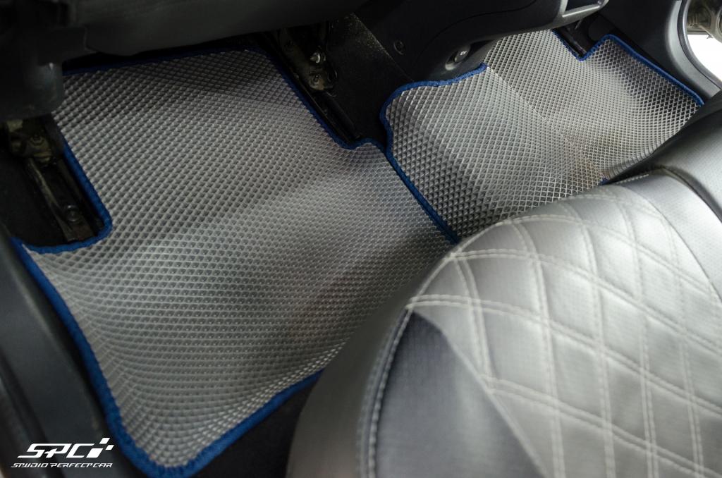 Купить коврики EVA можно выбрав в конструкторе фактуру материала (сота смотрится немного интереснее, но её желательно дополнить подпятником, чтобы комплект служил вечно), цвета основы коврика и окантовки, а также вариант комплектации и положив комплект в корзину. При желании добавьте подпятник и шильдик.