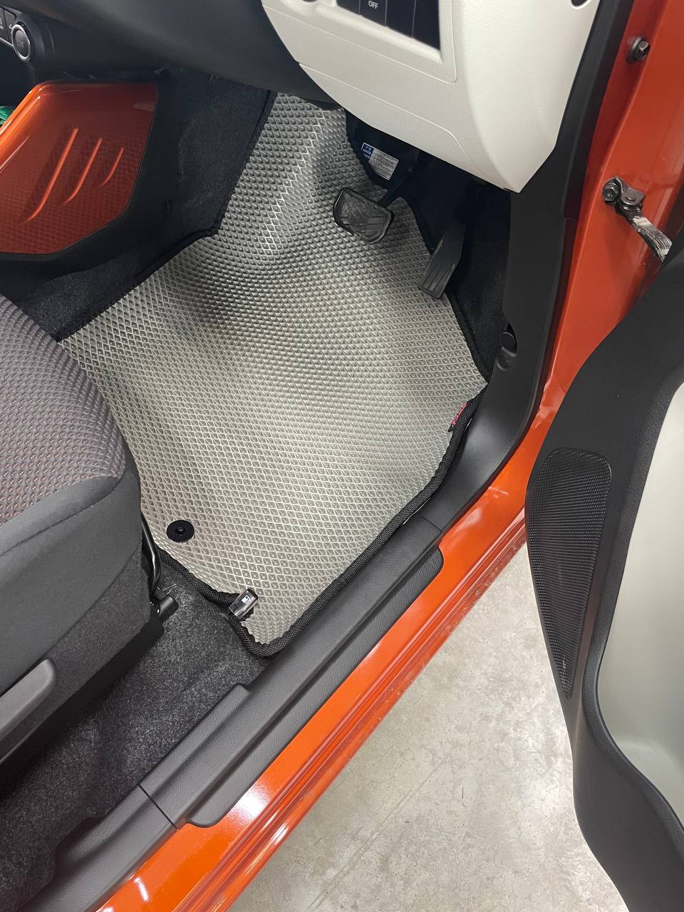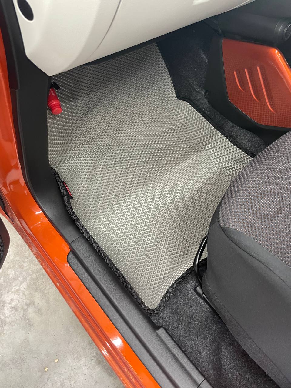 Купить коврики EVA можно выбрав в конструкторе фактуру материала (сота смотрится немного интереснее, но её желательно дополнить подпятником, чтобы комплект служил вечно), цвета основы коврика и окантовки, а также вариант комплектации и положив комплект в корзину. При желании добавьте подпятник и шильдик.